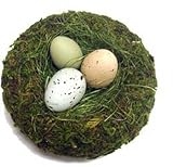 Moss Covered Realistic Looking Bird Nest with Artificial Bird Eggs